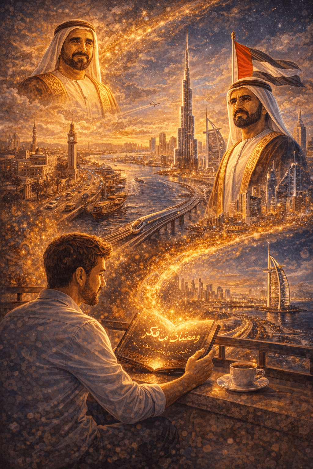 إن كان تقديري لإحساسه صحيحاً، فإن ظنه بي لم يكن في محله تماماً، فأنا ومنذ سنين ليست بالقريبة، متابعٌ بل ومثابرٌ على متابعة فكر وأسلوب وإنجازات دبي والشيخ محمد بن راشد آل مكتوم، خطوةً بخطوة، ولا أبالغ حين أقول: أني لم أفوت فرصةً للاستماع والاستمتاع بمقابلةٍ أو ندوةٍ أو أمسيةٍ لسموه، حباً وتقديراً وإعجاباً، لمن استطاع أن يخلق من دبي نموذجاً يحتذى في التنمية والتطور والازدهار.