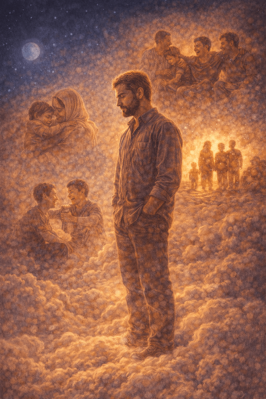 في تلك اللحظة أغمض عينيك وكأنك فوق غيمة ماطرة، واستحضر لحظاتك الآسرة منذ طفولتك، وكأنك تلامس النجوم وانت في احضان أمك، وكأنك تلهو وتلعب وتتعب لترتاح وتعود الى لعبك المعتاد بلا منغصات ولا هموم، وعد إلى عنفوان شبابك وكأنك تعشق القمر، وكأن القمر لا يرى سواك، واستذكر قصائدك وأشعارك التي كنت ترددها، واستخرج رسائلك المخبأة في ثنايا نفسك.